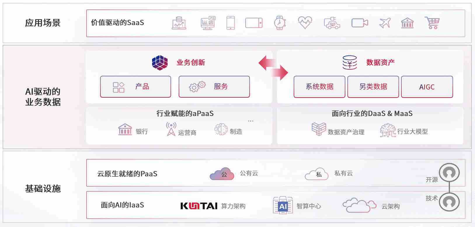 数字时代,,,,围绕企业数字化转型的关键要素,,ok钱包数码开创性的提出数云融合战略和技术体系框架,,,,着力在云原生、、、数字原生、、、、AI原生和信创产业上架构产品和服务能力,,,为处在不同数字化转型阶段的快消零售、、汽车、、金融、、医疗、、、、政企、、、教育、、、、运营商等行业客户提供泛在的敏捷IT能力和融合的数据驱动能力,,构建跨界融合创新的数字业务场景和新业务模式,,助力企业级客户建立面向未来的核心能力和竞争优势,,,,全面推动社会的数字化、、、、智能化转型升级。。。